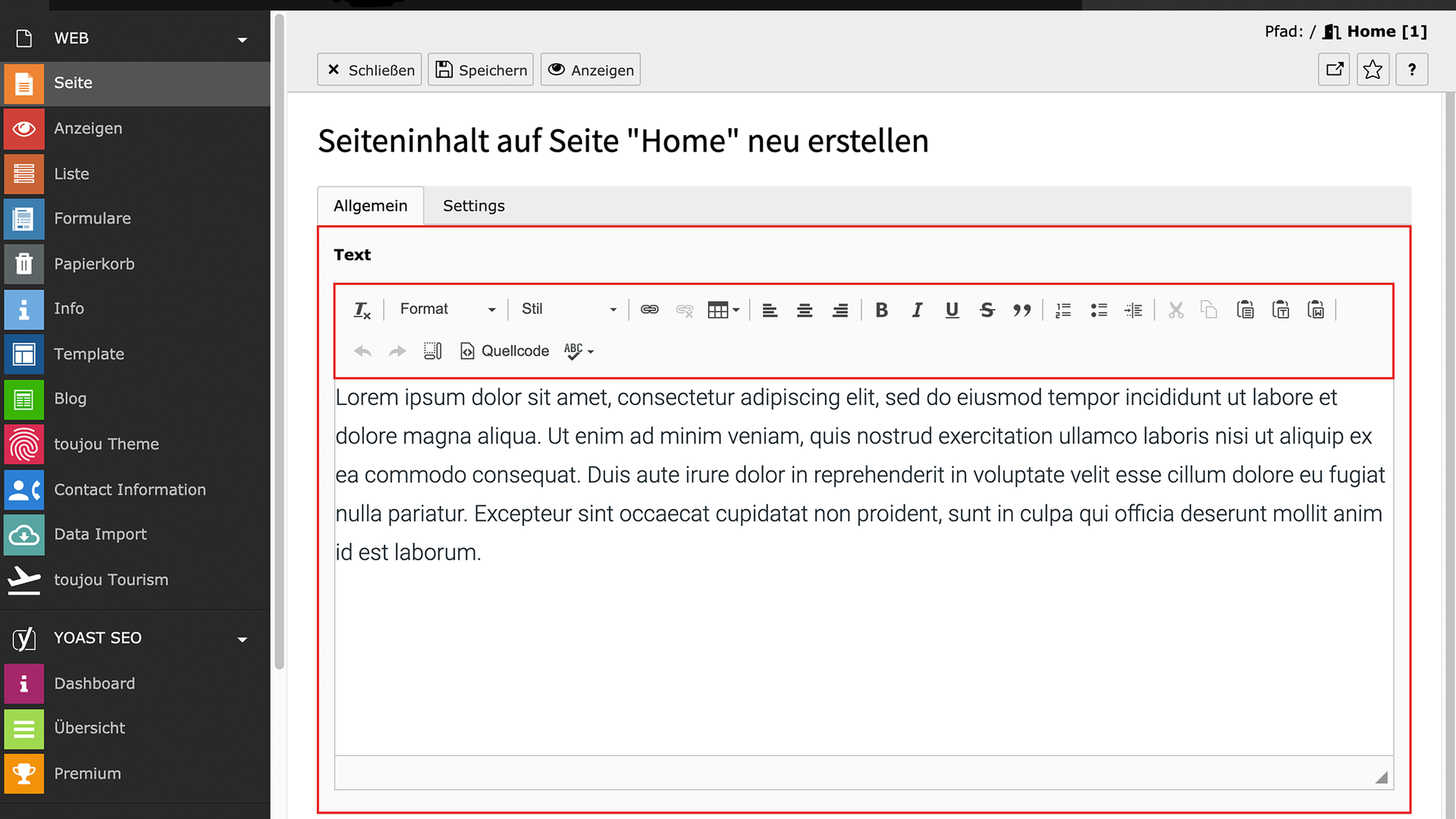 Erläuterungen aus dem toujou- & TYPO3-Setup, die mit dieser Elementanleitung in Verbindung stehen.