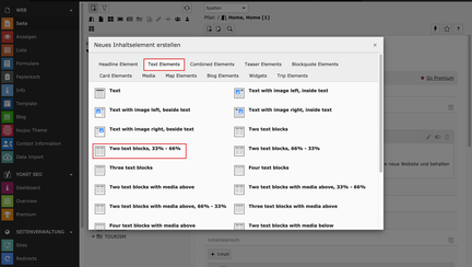 - Im Reiter Text Elements wählen Sie Two text blocks, 33%-66%.