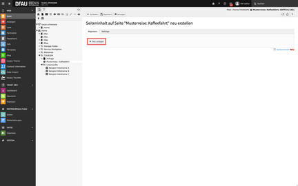 - Klicken Sie im Reiter Allgemein auf den Button Seite.
