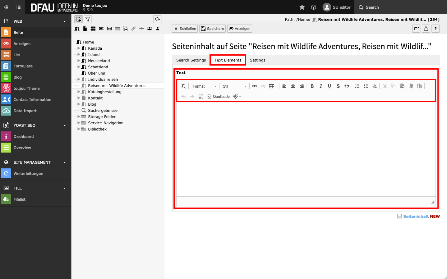 - Search-Elemente sind nur für Nutzer von toujou TOURISM wählbar.
