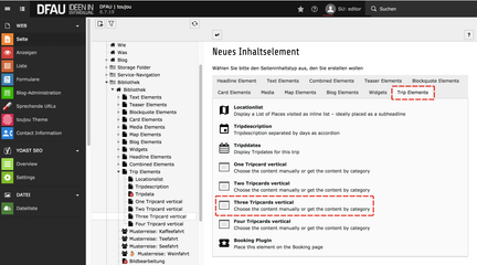 - Im Reiter Trip Elements wählen Sie Three Tripcards vertical.