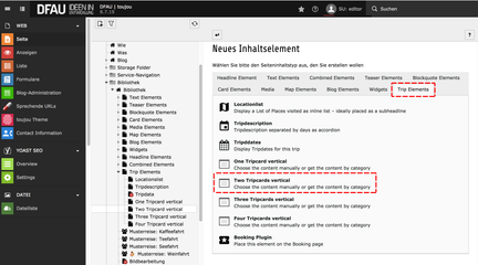 - Klicken Sie auf den Button Inhalt, um einen Reiseteaser anzulegen.