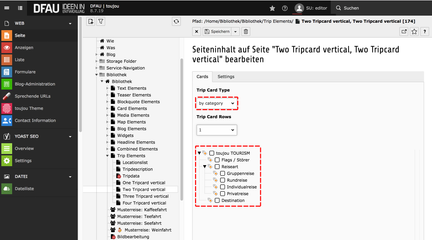 - Wählen Sie unter Trip Card Type by category, wenn Sie die Reisen über eine Kategorie auswählen wollen.