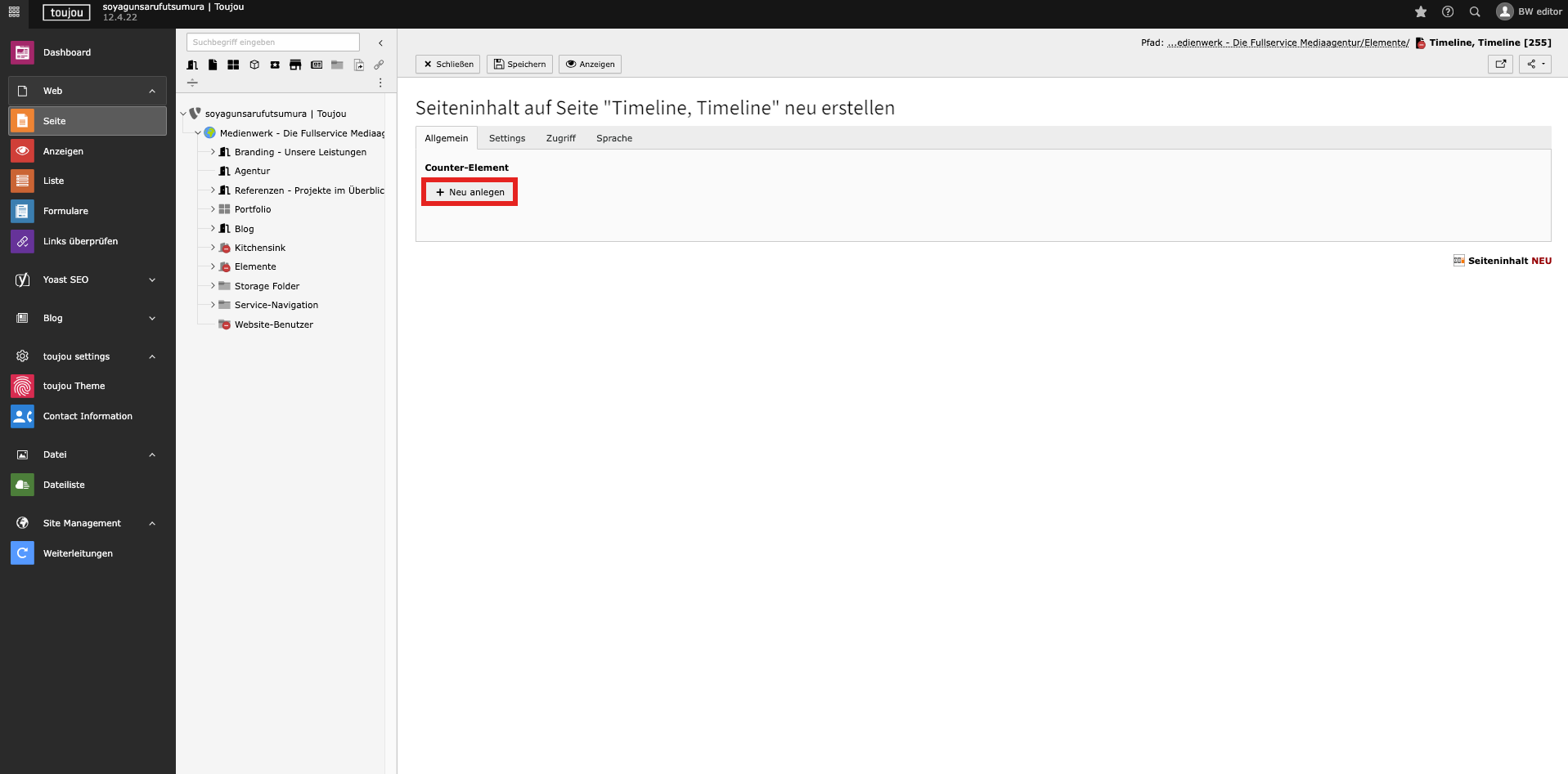 - Durch Klick auf + Neu anlegen im Reiter Allgemein erstellen Sie ein neuen Counter.