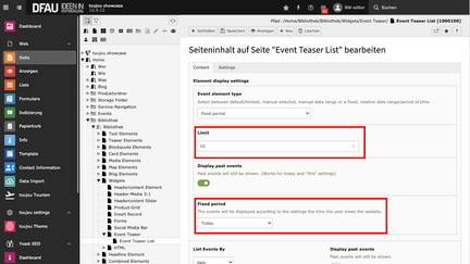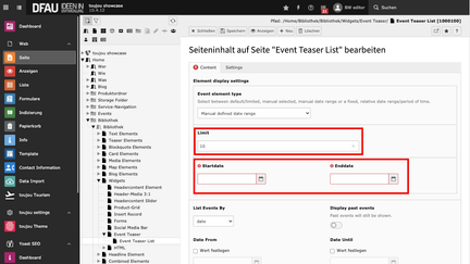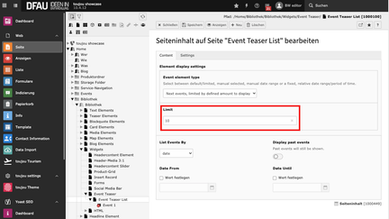 - Im Textfeld Limit geben Sie an, wie viele Veranstaltungen maximal angezeigt werden.