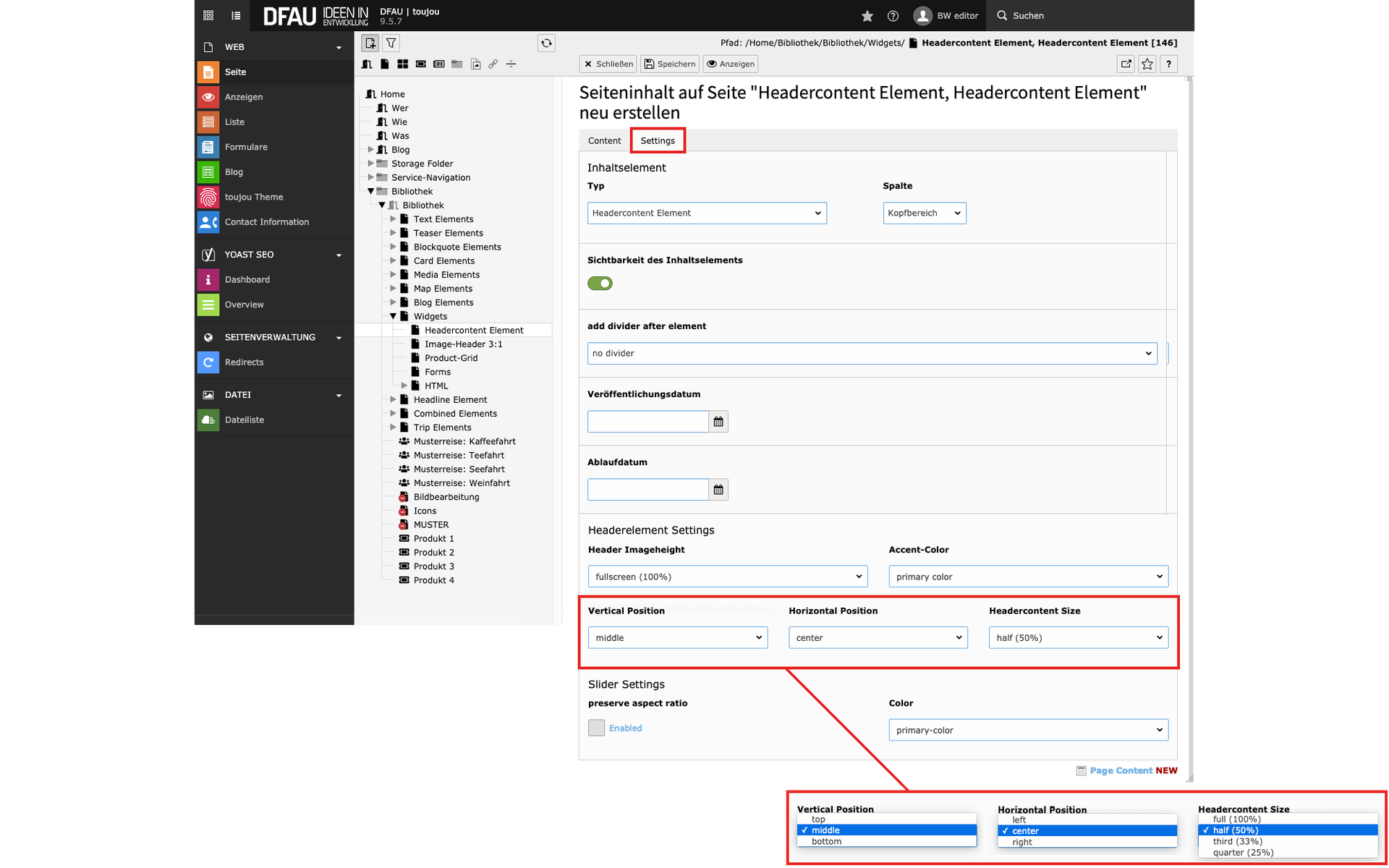 Erläuterungen aus dem toujou- & TYPO3-Setup, die mit dieser Elementanleitung in Verbindung stehen.