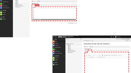 - Im Reiter Content schreiben Sie im untergeordneten Reiter HTML direkt HTML oder fügen einen externen Code ein.