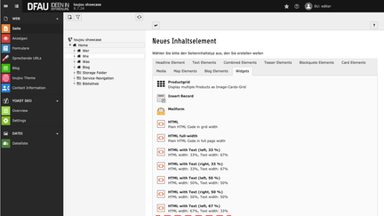 - Klicken Sie auf den Button Inhalt, um ein HTML-Element zu erstellen.