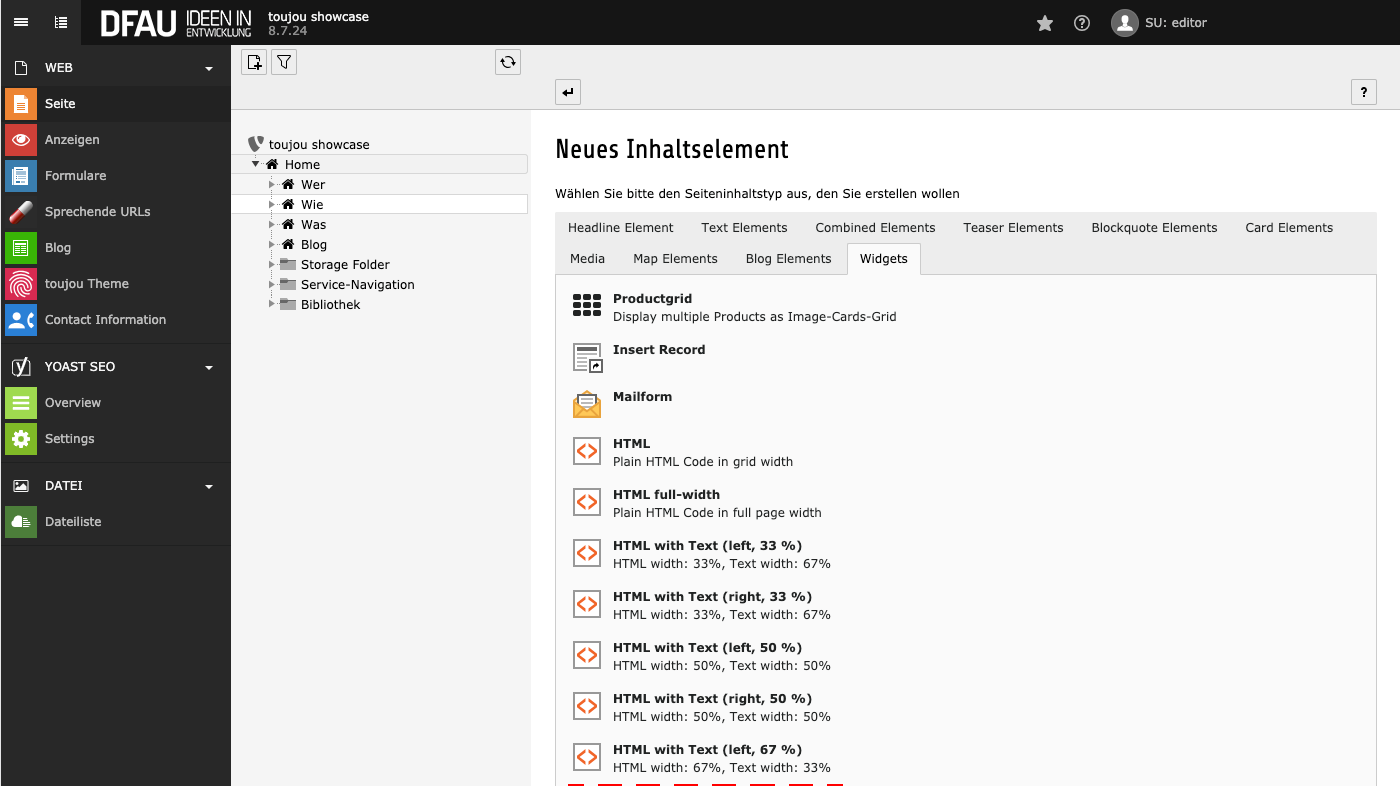 Erläuterungen aus dem toujou- & TYPO3-Setup, die mit dieser Elementanleitung in Verbindung stehen.