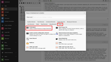 Bevor Sie ein Product Grid anlegen können, benötigen Sie die einzelnen Produkt-Unterseiten, aus denen das Widget Product Grid seine Auswahl und Darstellung im Frontend speisen kann. Wie man Produktseiten anlegt, haben wir in diesen Tutorials für Sie aufbereitet: