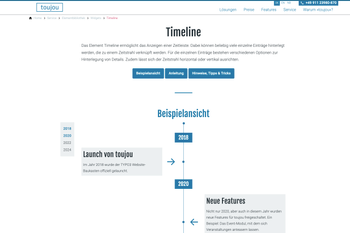 Im Jahr 2024 wurde Timeline als eines von 150+ toujou-Elementen für alle toujou-Kunden und -Anwenderinnen zugänglich.