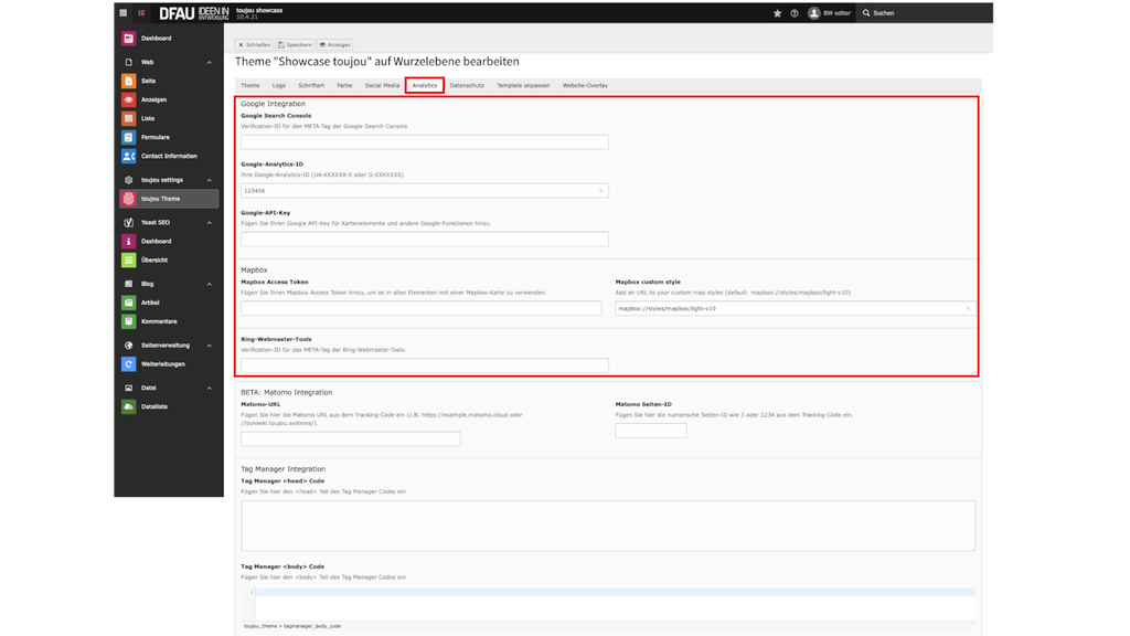 Analyse- und Tracking-IDs in toujou einbinden (Laufzeit: 3'47").