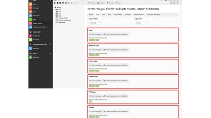 In den Logo Settings erhalten Sie verschiedene Möglichkeiten, Ihr Logo bzw. Versionen davon hochzuladen. Die Nutzung aller Möglichkeiten ist nicht vorgeschrieben oder notwendig, wenn Sie nur eine oder wenige Logo-Varianten vorgesehen haben.