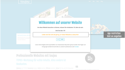 - Altersbeschränkung auf Verneinung: Warnungstext für minderjährige Website-Besucher nach Verneinung.