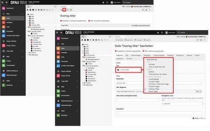 - Eine Overlay-Seite erstellen Sie, indem Sie auf Overlay Page klicken und damit die Beschaffenheit Ihrer vorherigen Content Page ändern.
