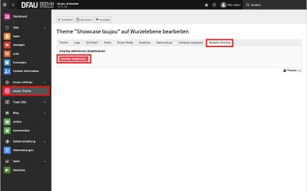 - Mit Klick auf das Icon toujou Theme in der Modulübersicht Ihrer Website öffnet sich das Bearbeitungsfenster.