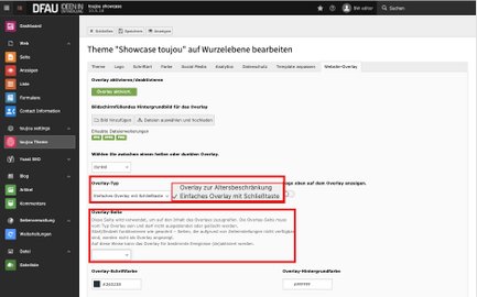 - Overlay-Typ: Hier legen Sie fest, ob Sie eine Seite zur Altersbeschränkung vorschalten (müssen) oder ob es sich um eine »simple« Seiteneinblendung handelt.