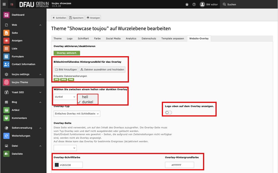 Theme-Settings: Overlay-Design und Funktion aktivieren