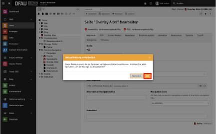 - Da die oben beschriebene Veränderung des Seitentyps für bestehende Seiten Folgen für deren Funktionalität und Inhalte hat, müssen Sie diese Bearbeitung gesondert bestätigen.
