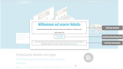 - Wird hier »Ja« geklickt, schließt sich das Overlay-Fenster und Besuchern stehen alle Website-Inhalte zur Verfügung.