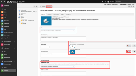 - Um ein Medienelement für eine übersetzte Seite suchmaschinenoptimiert aufzubereiten, können Sie die Metadaten des Bildes für die eingestellte Sprache anpassen.