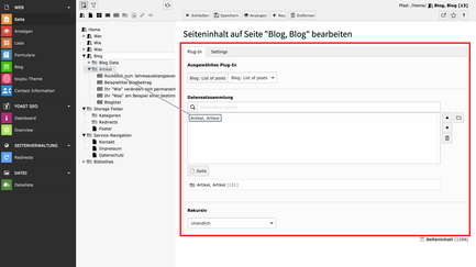 - Bereits voreingestellt finden Sie dort das Blog-Plugin für List of Posts im Inhaltsbereich der Seite vor.