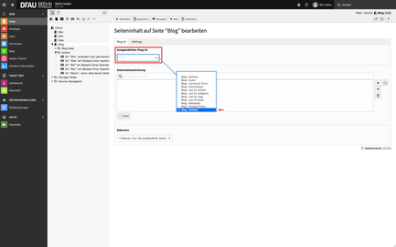 - Im Inhaltsbereich der Seite finden Sie das Blog-Plugin integriert.