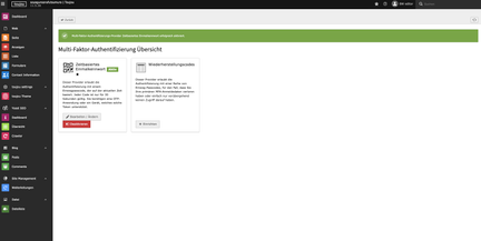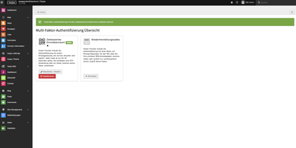 - Sofern das Einrichten der Multi-Faktor-Authentifizierung erfolgreich war, werden Sie darüber via Meldung (in grün) informiert.