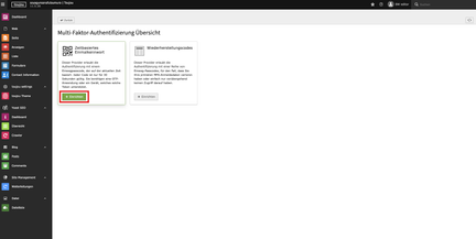 - Navigieren Sie in der Übersichtsseite der Multi-Faktor-Authentifizierung zur Option Zeitbasiertes Einmalkennwort und klicken Sie hier auf den Button + Einrichten.