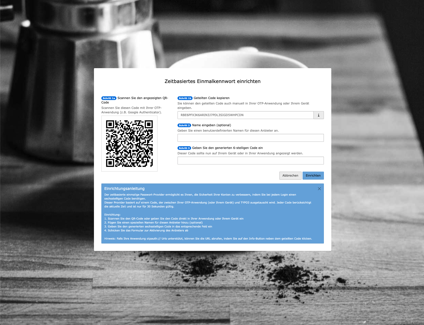- Klicken Sie hierfür auf den Button Zeitbasiertes Einmalkennwort.