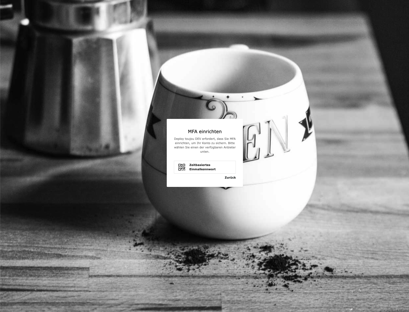 - Beim Erstversuch des Einloggens nach Aktivierung der MFA für eine toujou-Instanz, müssen alle User die Multi-Faktor-Authentifizierung aktivieren.