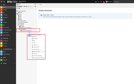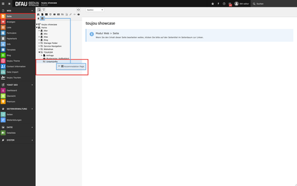 - Mit einem Rechtsklick auf das Icon der Accomodation Page öffnet sich das Kontextmenü der Seite.