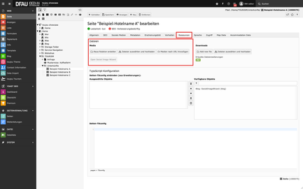 - Im Bereich Dateien klicken Sie unter Media auf Neue Relation erstellen oder Dateien auswählen und hochladen.