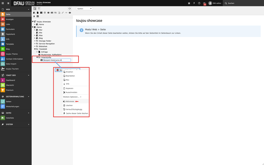 - Mit einem Klick auf Aktivieren blenden Sie die Seite ein.
