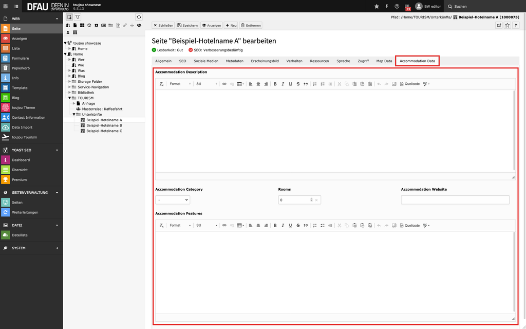 - Der Seitentitel wird im Frontend ausgegeben. Geben Sie der Accomodation Page als neuen Titel daher am besten den Namen der Unterkunft.
