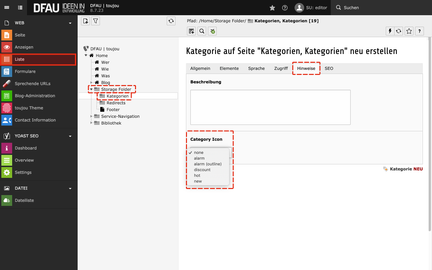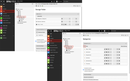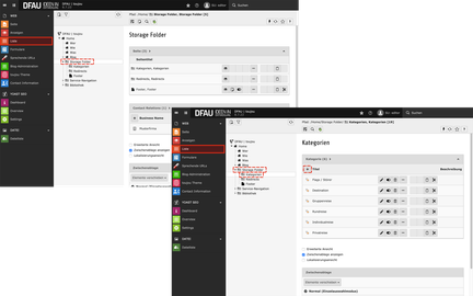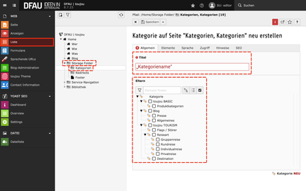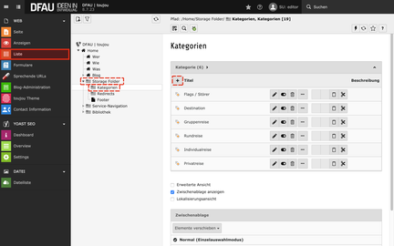 - Öffnen Sie im Modul Liste im Seitenbaum den Ordner Storage Folder und darin den Ordner Kategorien.