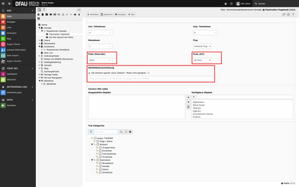 - Trip Categories: Hier weisen Sie die Reise einer Kategorie zu.