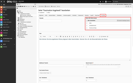 - Wie Sie die einzelnen Seitenelemente einer Reise anlegen und bearbeiten können, wird Ihnen unter Trip Elements erklärt.