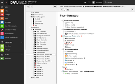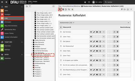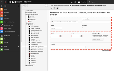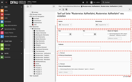 Um Termine und Preise einer Reise darzustellen, müssen Sie folgende Datensätze in Ihrer Reiseseite anlegen. Nutzen Sie dafür bitte das Modul Liste. Orientieren Sie sich gerne an unser Musterreise.