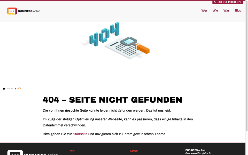 - Klicken Sie auf die (noch) ausgeblendete Seite 404.