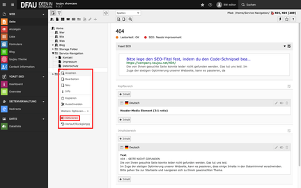 - Mit einem Rechtsklick auf das Page-Icon der 404-Seite öffnet sich ein Kontextmenü.