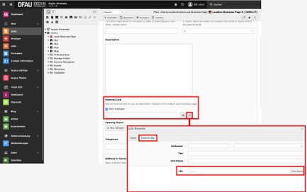 - Wählen Sie im Link-Browser den Reiter Externe URL an und geben Sie anschließend im Feld URL die Website-Adresse ein.