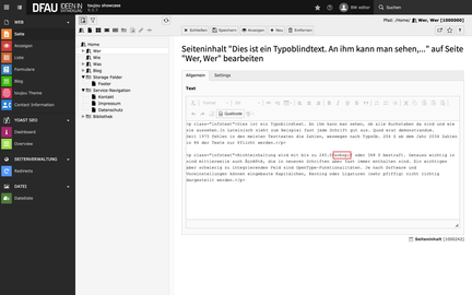 Das Arbeiten im Quelltext dient ausschließlich zur Fehlerbehebung für den seltenen Fall, dass der von Ihnen eingefügte Text sich anders im Frontend darstellen sollte als erwartet. In keinem Falle sollten Sie eigenständig Code einfügen.