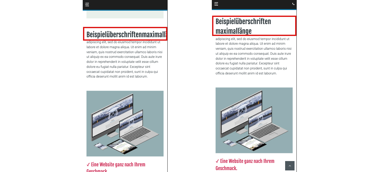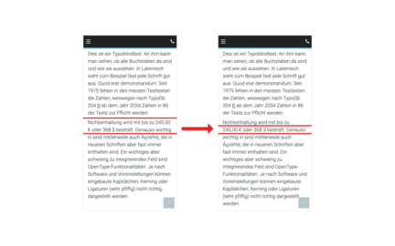 Dies ist vor allem für die Ansicht bei mobilen Endgeräten relevant. Wenn ein Wort (je nach Endgerät) im Frontent an einer bestimmten Stelle umgebrochen wird, wird kein Trennstrich bzw. Bindestrich angezeigt. Findet kein Umbruch statt, wird das Wort im Ganzen angezeigt.