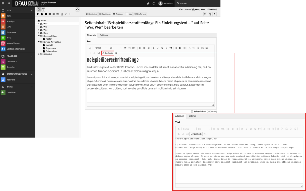 Umgang mit dem Quelltext im RTE