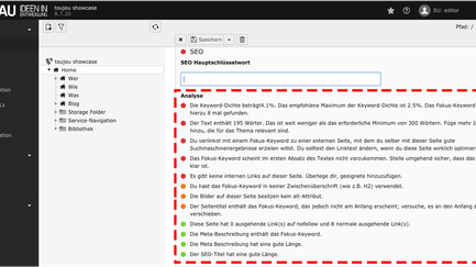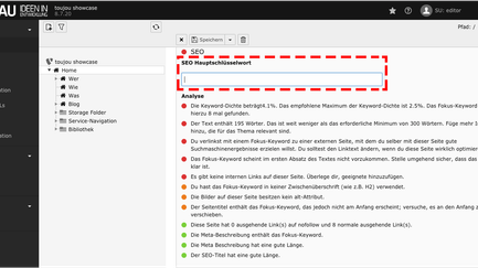 Mit dem Analyse-Feld kann man Texte vor Veröffentlichung allerdings auch auf die Verwendung von Synonymen hin überprüfen.