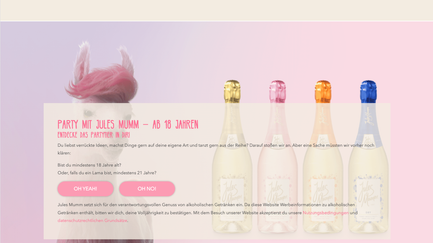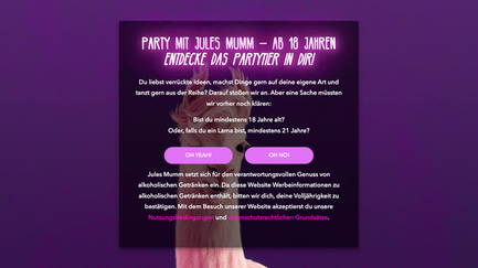 "Sorry, Du kommst hier nicht rein." Sei es die förmliche Ansprache oder das Du, gestaltet sich die Abfrage nüchtern oder verspielt – diese Entscheidungen obliegen den jeweiligen Markenverantwortlichen. Denn der Part der Altersfreigabe wird mit toujou individuell und in Einklang mit dem Corporate-Design-Vorgaben umgesetzt.